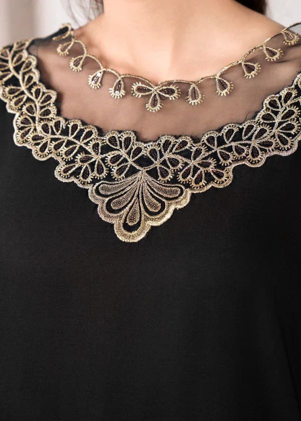 Midnight Grace – Embroidered Black Kurta & Flapper 2 Piece - Top & Buttom